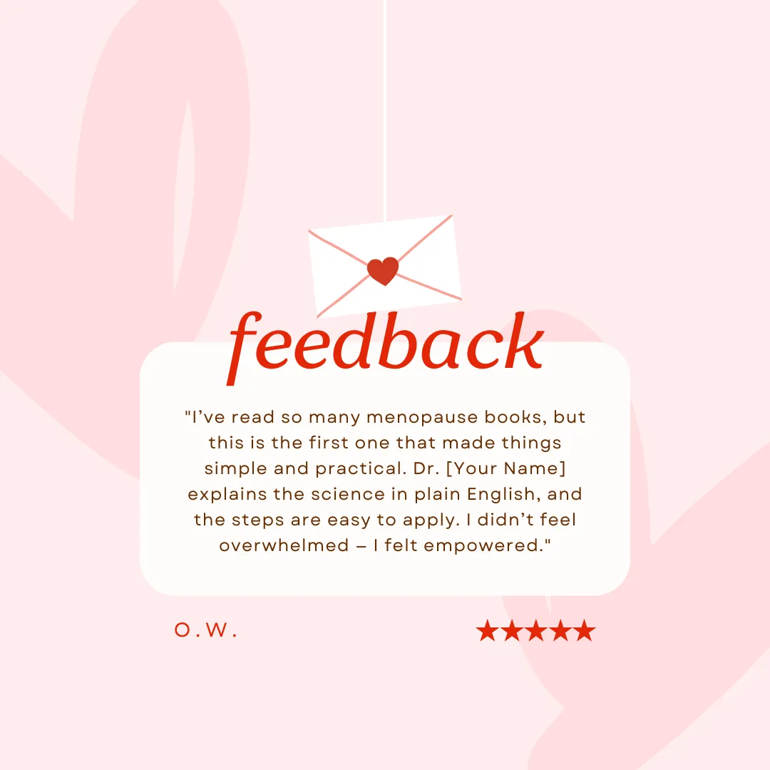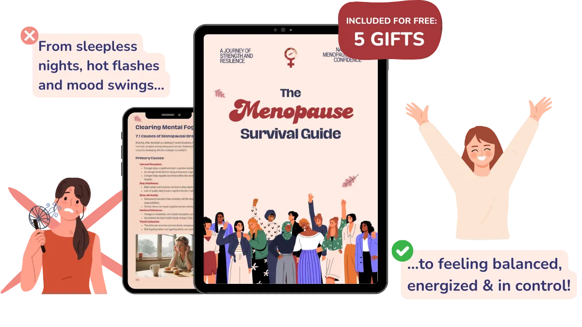 The information provided on this website and in The Menopause Survival Guide is for informational and educational purposes only and is not medical advice. It is not a substitute for professional medical advice from your own doctor, diagnosis, or treatment. Always consult with a qualified healthcare provider before making any changes to your health, diet, or treatment plan.