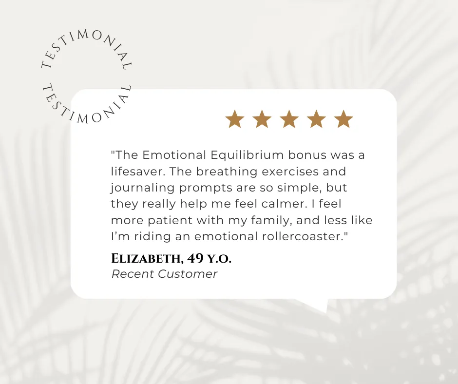 You'll stop feeling like your body is out of control. This is how I felt when I was struggling with perimenopausal mood swings… But with this guide, you'll have the tools to balance your emotions, and you'll feel confident and in control again.